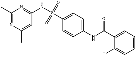 - Synonyms: N-[4-[(2,6-dimethylpyrimidin-4-yl)sulfamoyl]phenyl]-2-fluorobenzamide Benzamide, N-[4-[[(2,6-dimethyl-4-pyrimidinyl)amino]sulfonyl]phenyl]-2-fluoro-