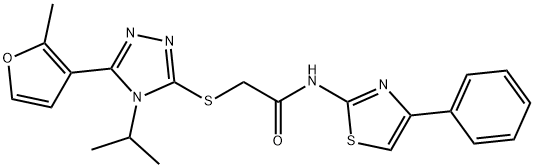 - Synonyms: 2-[[5-(2-methylfuran-3-yl)-4-propan-2-yl-1,2,4-triazol-3-yl]sulfanyl]-N-(4-phenyl-1,3-thiazol-2-yl)acetamide Acetamide, 2-[[4-(1-methylethyl)-5-(2-methyl-3-furanyl)-4H-1,2,4-triazol-3-yl]thio]-N-(4-phenyl-2-thiazolyl)-