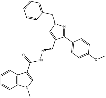 - Synonyms: N-[(E)-[1-benzyl-3-(4-methoxyphenyl)pyrazol-4-yl]methylideneamino]-1-methylindole-3-carboxamide 1H-Indole-3-carboxylic acid, 1-methyl-, 2-[[3-(4-methoxyphenyl)-1-(phenylmethyl)-1H-pyrazol-4-yl]methylene]hydrazide