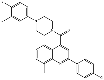 - Synonyms: [2-(4-chlorophenyl)-8-methylquinolin-4-yl]-[4-(3,4-dichlorophenyl)piperazin-1-yl]methanone Methanone, [2-(4-chlorophenyl)-8-methyl-4-quinolinyl][4-(3,4-dichlorophenyl)-1-piperazinyl]-