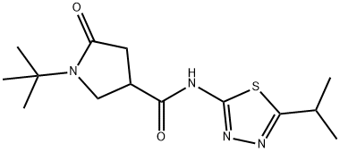 - Synonyms: 1-tert-butyl-5-oxo-N-(5-propan-2-yl-1,3,4-thiadiazol-2-yl)pyrrolidine-3-carboxamide 3-Pyrrolidinecarboxamide, 1-(1,1-dimethylethyl)-N-[5-(1-methylethyl)-1,3,4-thiadiazol-2-yl]-5-oxo-
