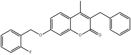 - Synonyms: 3-benzyl-7-[(2-fluorophenyl)methoxy]-4-methylchromen-2-one 2H-1-Benzopyran-2-one, 7-[(2-fluorophenyl)methoxy]-4-methyl-3-(phenylmethyl)- 3-BENZYL-7-((2-FLUOROBENZYL)OXY)-4-METHYL-2H-CHROMEN-2-ONE