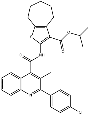 - Synonyms: propan-2-yl 2-[[2-(4-chlorophenyl)-3-methylquinoline-4-carbonyl]amino]-5,6,7,8-tetrahydro-4H-cyclohepta[b]thiophene-3-carboxylate 4H-Cyclohepta[b]thiophene-3-carboxylic acid, 2-[[[2-(4-chlorophenyl)-3-methyl-4-quinolinyl]carbonyl]amino]-5,6,7,8-tetrahydro-, 1-methylethyl ester