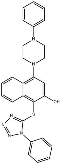 - Synonyms: 4-(4-phenylpiperazin-1-yl)-1-(1-phenyltetrazol-5-yl)sulfanylnaphthalen-2-ol 2-Naphthalenol, 4-(4-phenyl-1-piperazinyl)-1-[(1-phenyl-1H-tetrazol-5-yl)thio]-