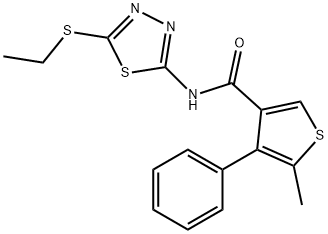 - Synonyms: N-(5-ethylsulfanyl-1,3,4-thiadiazol-2-yl)-5-methyl-4-phenylthiophene-3-carboxamide 3-Thiophenecarboxamide, N-[5-(ethylthio)-1,3,4-thiadiazol-2-yl]-5-methyl-4-phenyl-