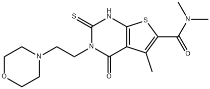 - Synonyms: N,N,5-trimethyl-3-(2-morpholin-4-ylethyl)-4-oxo-2-sulfanylidene-1H-thieno[2,3-d]pyrimidine-6-carboxamide Thieno[2,3-d]pyrimidine-6-carboxamide, 1,2,3,4-tetrahydro-N,N,5-trimethyl-3-[2-(4-morpholinyl)ethyl]-4-oxo-2-thioxo-