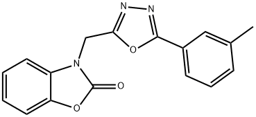 - Synonyms: 3-[[5-(3-methylphenyl)-1,3,4-oxadiazol-2-yl]methyl]-1,3-benzoxazol-2-one 2(3H)-Benzoxazolone, 3-[[5-(3-methylphenyl)-1,3,4-oxadiazol-2-yl]methyl]-