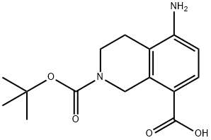 - Synonyms: 5-Amino-2-[(2-methylpropan-2-yl)oxycarbonyl]-3,4-dihydro-1H-isoquinoline-8-carboxylic acid 5-Amino-2-(tert-butoxycarbonyl)-1,2,3,4-tetrahydroisoquinoline-8-carboxylic acid 2,8(1H)-Isoquinolinedicarboxylic acid, 5-amino-3,4-dihydro-, 2-(1,1-dimethylethyl) ester