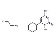| Description | Ciclopirox (HOE296b) exerts its action by binding to and chelating trivalent cations, such as Fe3+ and Al3+, thereby inhibiting the availability of essential co-factors for enzymes. Ciclopirox is a synthetic, broad-spectrum antifungal agent with additional antibacterial and anti-inflammatory activities. This may lead to a loss of activity of enzymes that are essential for cellular metabolism, the organization of cell wall structure and other crucial cell functions. In addition, ciclopirox exerts its anti-inflammatory activity by inhibiting 5-lipoxygenase and cyclooxygenase (COX). |