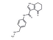 | Description | CP-547632 is an orally available and potent, ATP-competitive dual inhibitor of VEGFR-2 and FGF kinase F with IC50s of 11 nM and 9 nM, respectively. CP-547632 is selective, with higher selectivity for VEGFR2 and bFGF than for EGFR, PDGFRβ and related tyrosine kinases (TKs). PDGFRβ and related tyrosine kinases (TKs) CP-547632 has antitumour activity. |