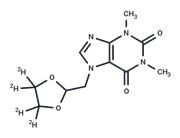 | Description | Doxofylline (Doxophylline) is a methylxanthine derivative with the presence of a dioxolane group in position 7. As a drug used in the treatment of asthma, doxofylline has shown similar efficacy to theophylline but with significantly fewer side effects in animal and human studies. |