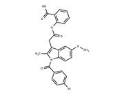 | Description | Indomethacin (Indomethacin) is a COX1 and COX2 inhibitor (IC50=18/26 nM) with blood-brain barrier permeability and non-selectivity. Indomethacin is a non-steroidal anti-inflammatory agent with anti-tumor and anti-infective activity. |