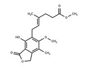 | In vitro | As an ester prodrug of the active immunosuppressant mycophenolic acid, Mycophenolate mofetil (10 μg/mL) significantly induces apoptosis in microglial cell cultures and increases the number of apoptotic cells due to activated caspase-3 immunoreactivity. At a concentration of 1 μg/mL, Mycophenolate mofetil also potently inhibits the proliferation of astrocytes and microglia. Recent studies have shown that following neuronal injury, Mycophenolate mofetil significantly reduces the extent of neuronal cell death in organotypic hippocampal slice cultures in a time-dependent manner. Mycophenolic acid inhibits the activity of both type I/II isocitrate dehydrogenase in a non-competitive, reversible, and selective manner, with IC50 values of 39 nM and 27 nM, respectively. Moreover, it concentration-dependently inhibits the proliferation of ConA-stimulated T cells (IC50 = 100 nM), lipopolysaccharide-stimulated B cells (IC50 = 120 nM), and alloantigen-specific T cell proliferation (IC50 = 51 nM). |