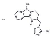 | In vitro | Ondansetron is a potent, highly selective, competitive antagonist at 5-HT3 receptors. It demonstrates some affinity to other receptor subtypes, including 5-HT1B, 5-HT1C, 5-HT4, opioid, and 1-adrenergic receptors, and to the μ-opioid receptor. However, ondansetron has 1000:1 selectivity toward 5-HT3 receptors[1]. Ondansetron is found to be the most potent HERG-channel blocker among several 5-HT3 antagonists, with an IC50 of 810 nM and has been reported to block Na+ channels[2]. |