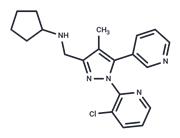 | Kinase Assay | The extract and binding assay buffer consists of 25 mM sodium phosphate, 10 mM potassium fluoride, 10 mM sodium molybdate, 10% glycerol, 1.5 mM EDTA, 2 mM dithiothreitol, 2 mM CHAPS, and 1 mM phenylmethylsulfonyl fluoride (pH 7.4), at room temperature. Intracellular receptors produced in this fashion exhibit reproducible interaction with known ligands at the published affinity. These preparations are subjected to extensive quality control experiments before the assays, covering receptor response, specificity, size, and reference ligand affinity. Receptor assays are performed with a final volume of 250 μL containing from 50-75 μg of extract protein, plus 1-2 nM [3H]Dex at 84 Ci/mmol and varying concentrations of competing ligand (0 to 10 μM). Assays are set up using a 96-well minitube system, and incubations are carried out at 4°C for 18 h. Equilibrium under these conditions of buffer and temperature is achieved by 6-8 h. Nonspecific binding is defined as that binding remaining in the presence of 1000 nM unlabeled Dex. At the end of the incubation period, 200 μL of 6.25% hydroxyapatite are added in wash buffer (binding buffer in the absence of dithiothreitol and phenylmethylsulfonyl fluoride). Specific ligand binding to receptor is determined by a hydroxyapatite-binding assay. Hydroxyapatite absorbs the receptor-ligand complex, allowing for the separation of bound from free radiolabeled ligand. The mixture is vortexed and incubated for 10 min at 4°C and centrifuged, and the supernatant is removed. The hydroxyapatite pellet is washed two times in wash buffer. The amount of receptor-ligand complex is determined by liquid scintillation counting of the hydroxyapatite pellet after the addition of 0.5 mM EcoScint A scintillation cocktail from National Diagnostics[1]. |