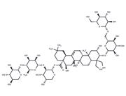 | In vitro | A novel triterpenoid saponin, deapioplatycoside E (1) was isolated from the root extract of Platycodon grandiflorum, together with the seven known saponins 2 - 8, i. e., platycoside E (2), deapioplatycodin D3 (3), platycodin D3 (4), polygalacin D2 (5), Platycodin D2 (6), deapioplatycodin D (7) and platycodin D (8). The structure of the new saponin 1 was determined on the basis of spectral analysis and chemical evidence[1] |