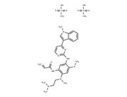 | Description | Prexasertib dimesylate (LY2606368 dimesylate) is a highly selective, ATP-competitive, second-generation inhibitor of checkpoint kinase 1 (CHK1), with a K_i of 0.9 nM and an IC_50 of <1 nM, and also effectively inhibits CHK2 (IC_50 = 8 nM) and RSK1 (IC_50 = 9 nM). Its mechanism induces double-stranded DNA breakage and replication catastrophe, leading to apoptosis, and demonstrates potent anti-tumor activity. |
