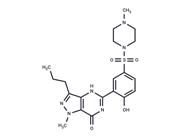 | In vivo | Chronic sildenafil treatment increases the detumescence phase in young and aged rats (p<0.05), although aged rats show a greater increase than young rats. Baseline cavernous PDE5 expression and activity are greater in aged vs young rats (p<0.05). After chronic sildenafil treatment cavernous PDE5 expression is increased in young (p<0.05) but not in aged rats. Chronic and acute sildenafil treatment similarly inhibits PDE5 activity in the penis of young and aged rats (p<0.05), coincident with its free plasma concentrations equivalent to clinically therapeutic ranges[2]. |
