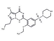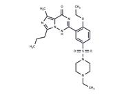 | In vitro | Vardenafil specifically inhibits the hydrolysis of cGMP by PDE5 with an IC50 of 0.7 nM (6.6 nM). Vardenafil significantly enhances the SNP-induced relaxation of human trabecular smooth muscle at 3 nM (10 nM). Vardenafil also significantly potentiates both ACh-induced and transmural electrical stimulation-induced relaxation of trabecular smooth muscle. Vardenafil (100 mM) increases cyclic GMP levels in rat hippocampal slices. Vardenafil, tadalafil, and Sildenafil each competitively inhibit cGMP hydrolysis by phosphodiesterase-5 (PDE5), thereby fostering cGMP accumulation and relaxation of vascular smooth muscle. |