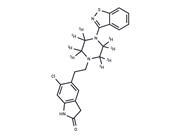In vivo | Ziprasidone blocked wild-type hERG currents in a voltage- and concentration-dependent manner in stably transfected HEK-293 cells with an IC(50) of 120 nM.Ziprasidone exhibited minimal hERG Ziprasidone significantly increased the time constant of the slow response to hERG current deactivation (-50 mV). ziprasidone is a 5-HT(1A) receptor agonist, as well as a 5-HT(2A), 5-HT(2C) and 5-HT(1B/1D) receptor antagonist. Ziprasidone is similar to the antidepressant promethazine in inhibiting the neuronal uptake of 5-HT and norepinephrine.Ziprasidone exhibits high affinity for human 5-HT receptors and human dopamine D(2) receptors. |