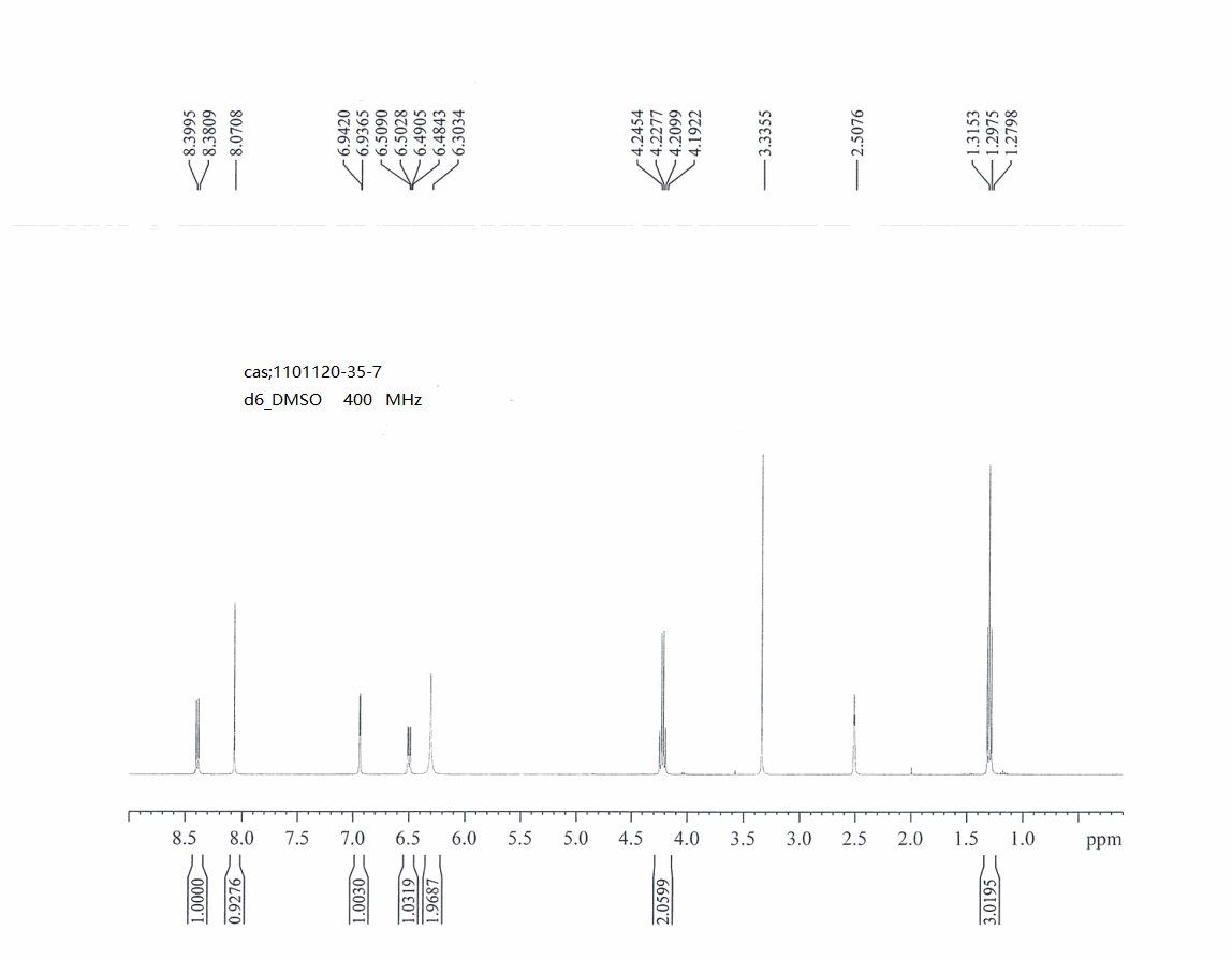 乙基 5-氨基吡唑并[1,5-A]吡啶-3-甲酸酯 2,2,2-三氟乙酸酯(1101120-35-7)核磁图(1HNMR) 相关产品图谱