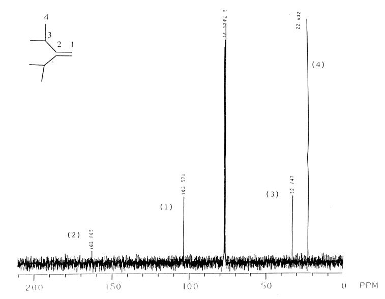 13CNMR (CDCl3) 163.065 (s), 103.578 (t), 32.747 (d), 22.632 (q