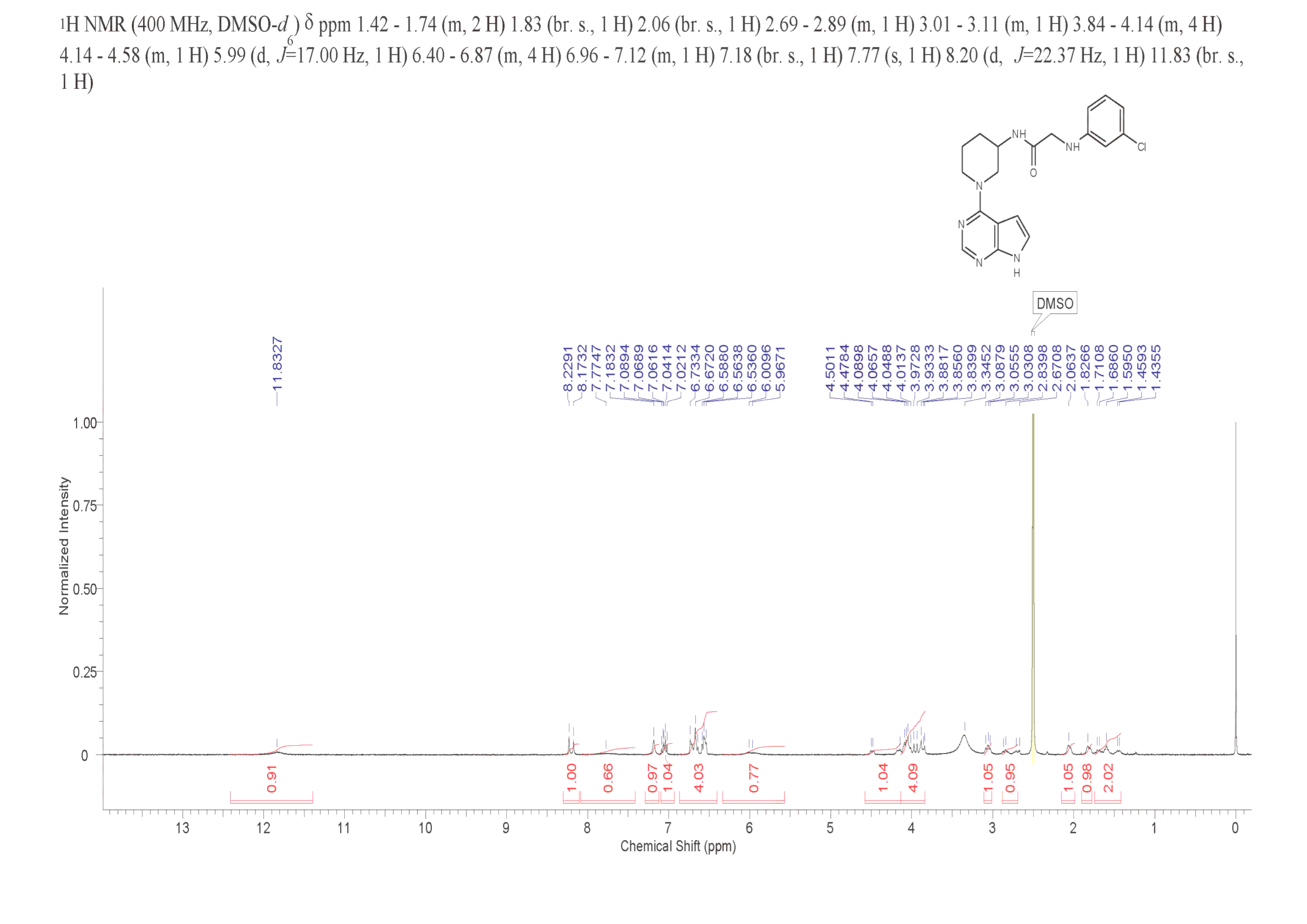 SNX-2112;4-(6,6-DIMETHYL-4-OXO-3-(TRIFLUOROMETHYL)-4,5,6,7-TETRAHYDRO-1H-INDAZOL-1-YL)-2-((1R,4R)-4-HYDROXYCYCLOHEXYLAMINO)BENZAMIDE(908112-43-6)核磁图(