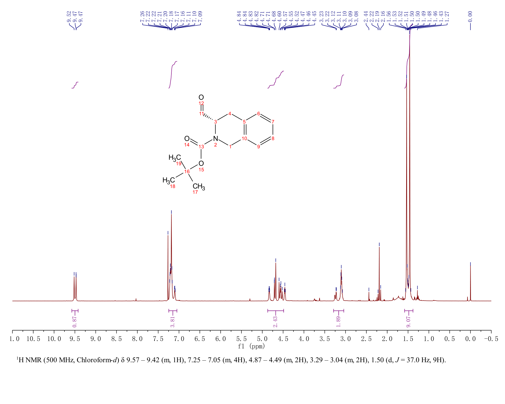 3(S)-甲醛基-3,4-二氢-1H-异喹啉-2-羧酸叔丁酯(145525-27-5)核磁图(1HNMR) 相关产品图谱