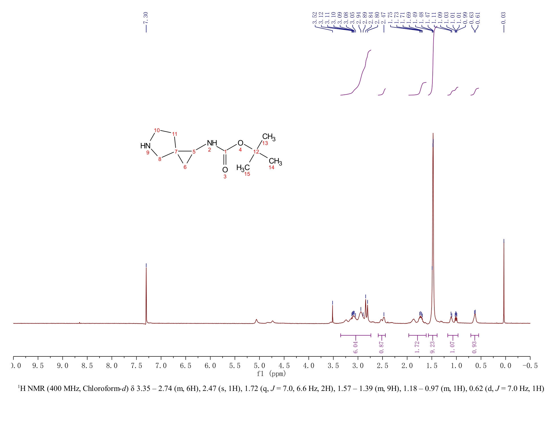 5-氮杂螺[2.4]庚烷-1-基氨基甲酸叔丁酯(150516-43-1)核磁图(1HNMR) 相关产品图谱