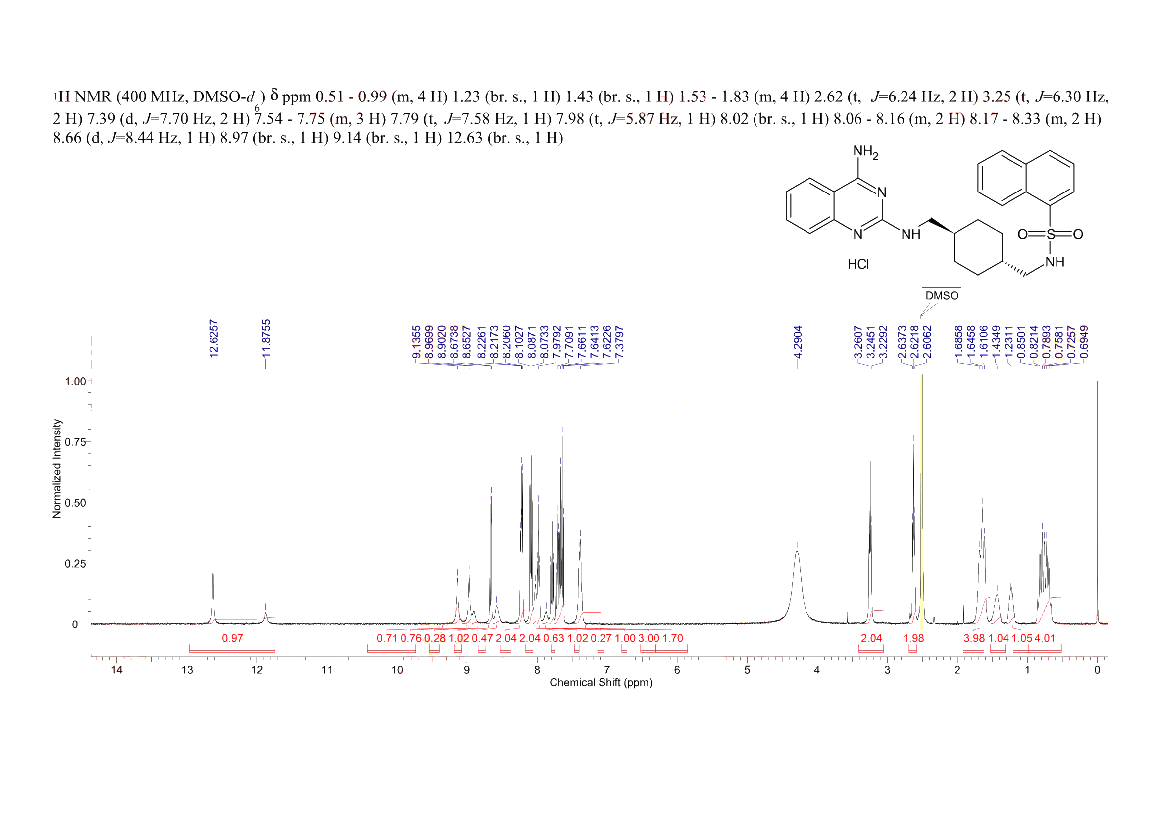 产品名称 N-[[反式-4-[[(4-氨基-2-喹唑啉基)氨基]甲基]环己基]甲基]-1-萘磺酰胺盐酸盐