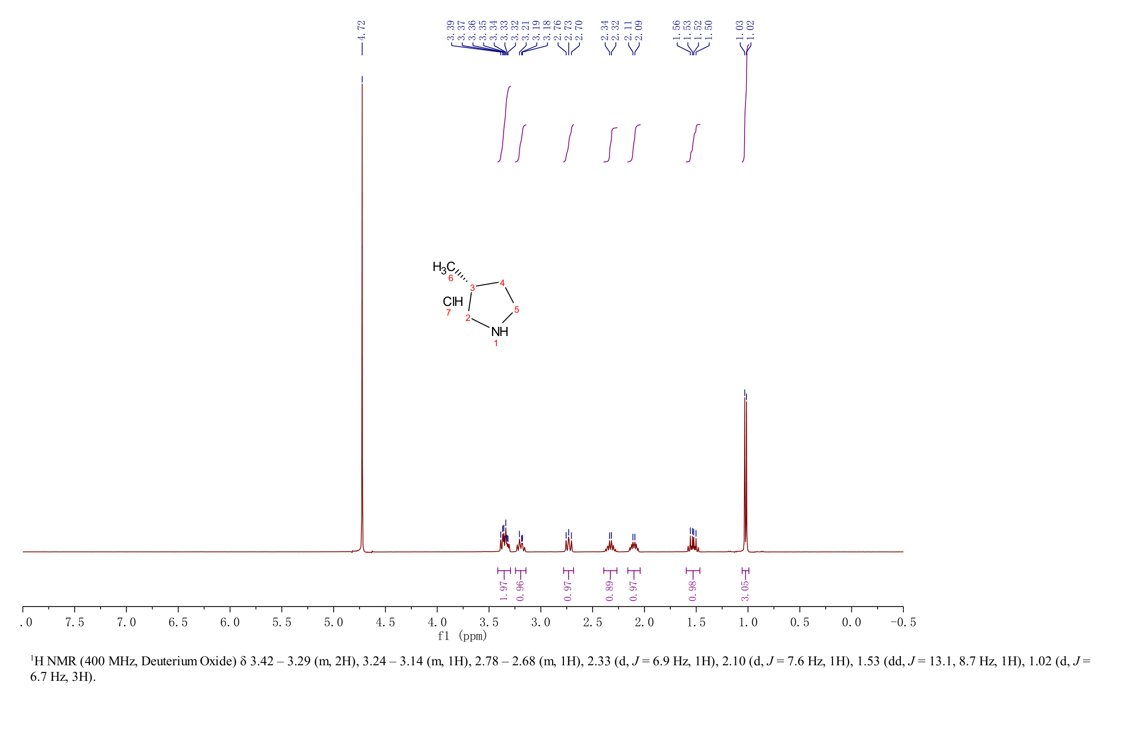 (R)-3-甲基吡咯烷盐酸盐(235093-98-8)核磁图(1HNMR) 相关产品图谱