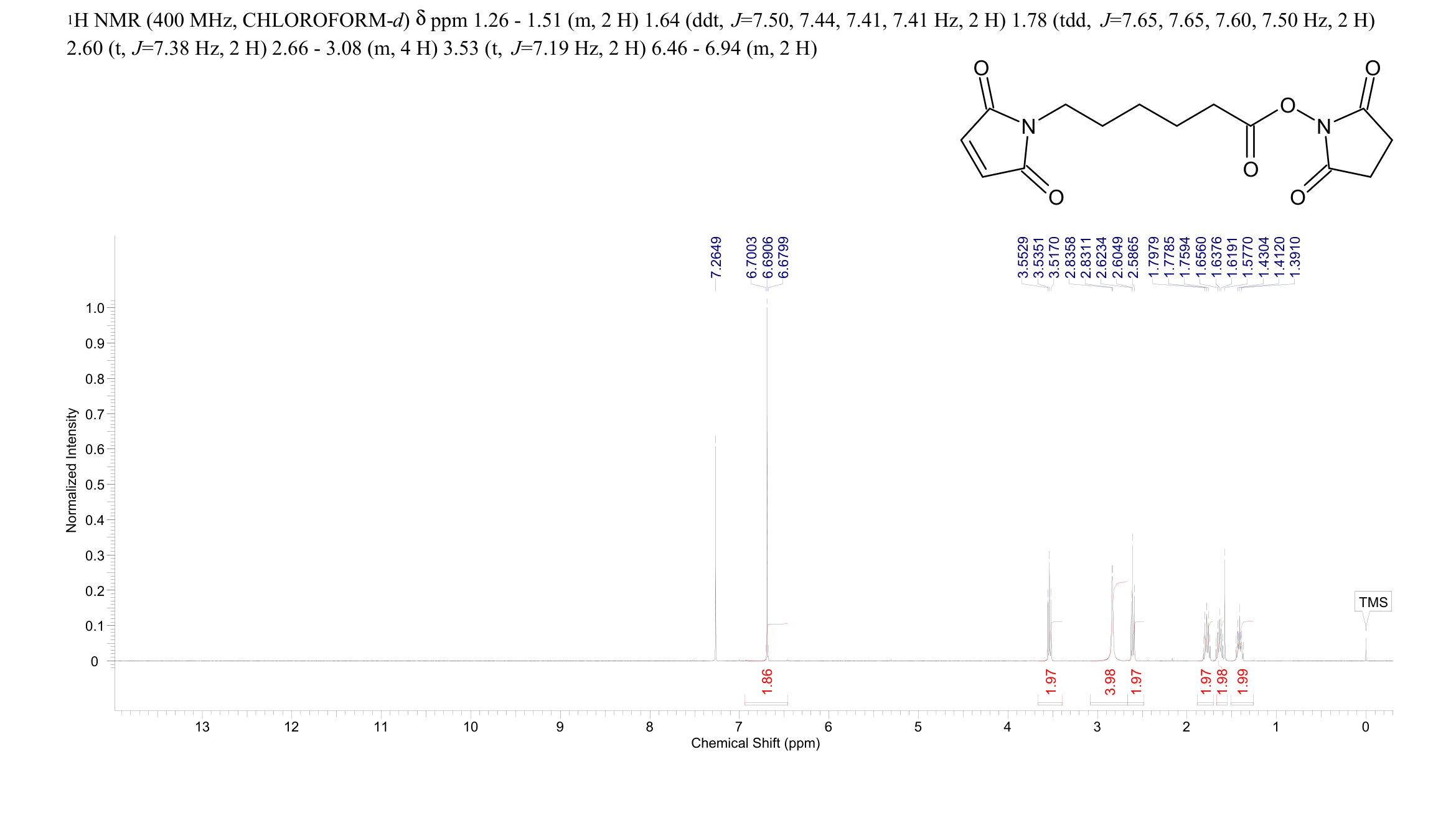 6-(马来酰亚胺基)己酸琥珀酰亚胺酯(55750-63-5)核磁图(1HNMR) 相关产品图谱
