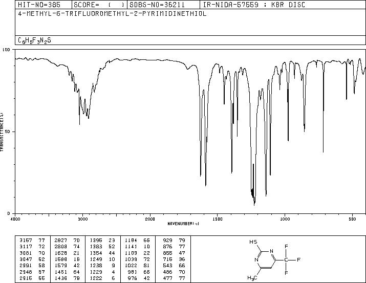 4-甲基-6-(三氟甲基)嘧啶-2-硫醇(78018-17-4)核磁图(