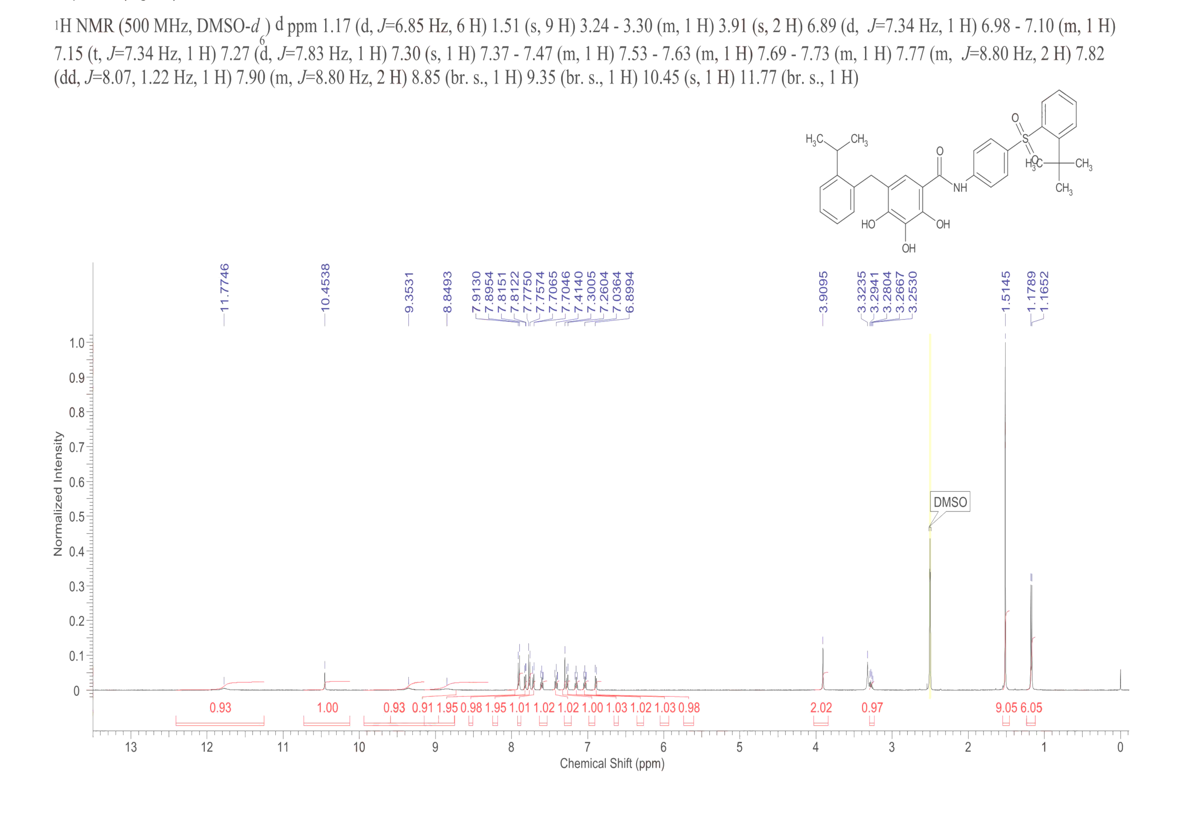 N-[4-(2-叔丁基苯磺酰基)苯基]-2,3,4-三羟基-5-(2-异丙基苯基甲基)苯甲酰胺(877877-35-5)核磁图(1HNMR) 相关产品图谱