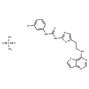 产品名称 N-(3-氯苯基)-N'-[5-[2-(噻吩并3,2-D]嘧啶-4-基氨基)乙基]-2-噻唑基]脲甲磺酸盐 (1:1)