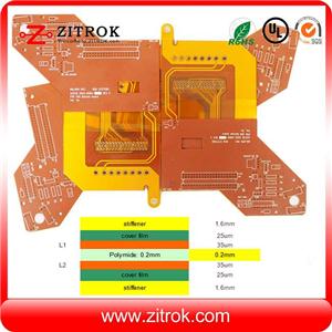 Rigid-flex1.6mm FR4 and 0.2mm Polyimide double-sided Yellow coverlayer PCB