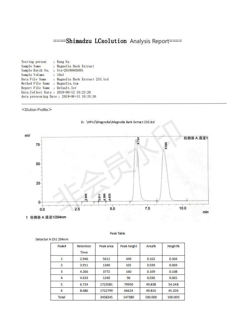 The active component of magnolia officinalis extract is Magnolol and Honokiol,It can be used as an antibacterial agent (gram-negative bacteria and acid-resistant bacteria) and can be used to prevent and treat acne.