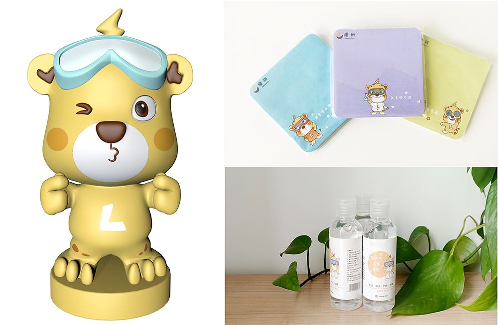 乐小豹系列印章(摆件)、消毒凝胶、便签本