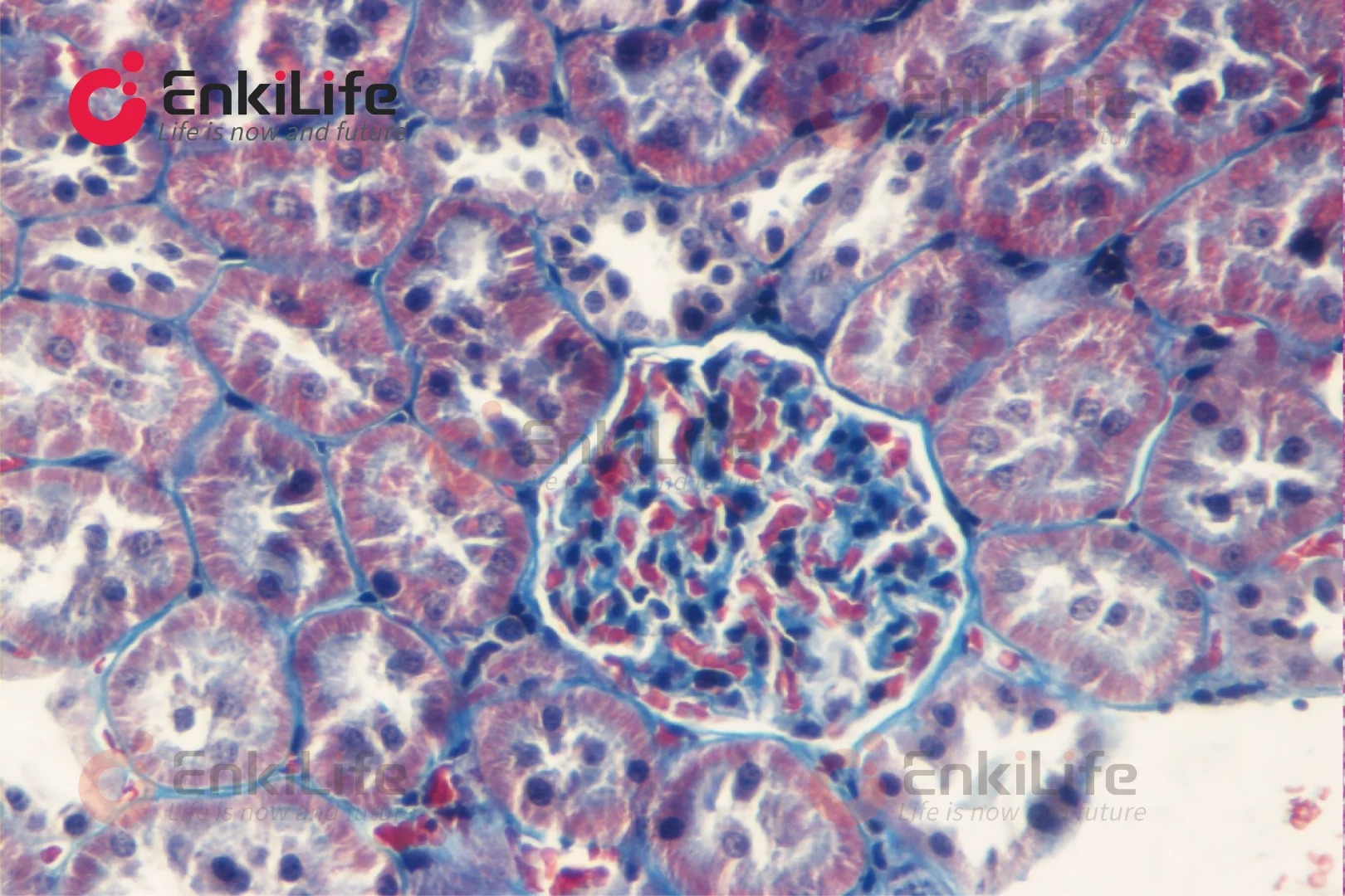 Masson染色是一种经典的结缔组织染色方法,它的原理是利用不同分子量的阴离子染料来区分组织成分。简单来说,小分子染料能钻进结构致密的组织,大分子染料则只能进入结构疏松的组织。所以,经过Masson染色后,肌纤维会被染成红色,而胶原纤维则呈现绿色或蓝色。