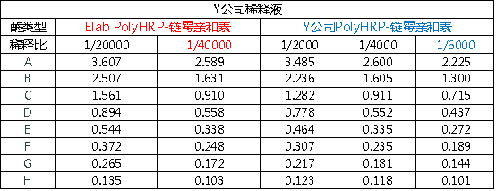 表3. Elabscience®PolyHRP-链霉亲和素与竞品在稀释液上的兼容性对比