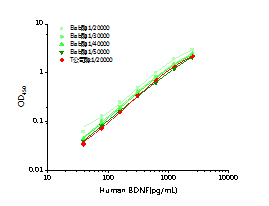 在夹心法ELISA(检测指标:Human BDNF)中,本品在1:20,000稀释度下的信号强度远高于竞品;在竞争法ELISA(检测指标:FA/VB9)中,本品在更高1:60,000稀释度下仍表现出与竞品相当的信号强度。值得注意的是,在两种检测体系下,本品的空白信号均显著更低。这些数据一致表明,Elabscience® PolyHRP-链霉亲和素在维持高信号输出的同时,能有效降低背景干扰,从而在实际应用中实现更高的检测灵敏度与更少的试剂消耗。