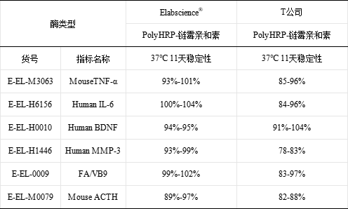 表2. Elabscience®PolyHRP-链霉亲和素与竞品的稳定性对比