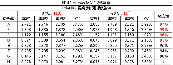 表1. Elabscience®PolyHRP-链霉亲和素长期的稳定性