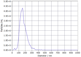 图2为采用纳米颗粒追踪分析法(NTA)对PolyHRP-链霉亲和素进行粒径测定结果。分析结果表明,产品粒径分布均一且集中,约155nm。