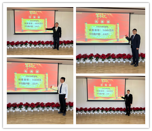 各营销部门负责人围绕2025年市场销售、客户拓展、资金回笼、团队建设等核心工作复盘总结,展望2026年工作蓝图并郑重立下“军令状”,清晰锚定全新目标与前进方向,尽显迎难而上、锐意进取的奋进姿态。此外,6位营销代表分享了年度工作心得与实战 ,还围绕经典案例展开热烈深入的交流探讨,碰撞思想火花。