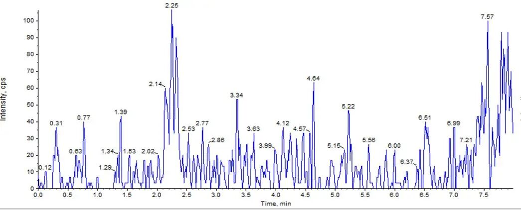 b) 流动相:流动相A相为0.1%甲酸乙腈溶液,B相为0.1%甲酸-2.0mmol/L乙酸铵水溶液;