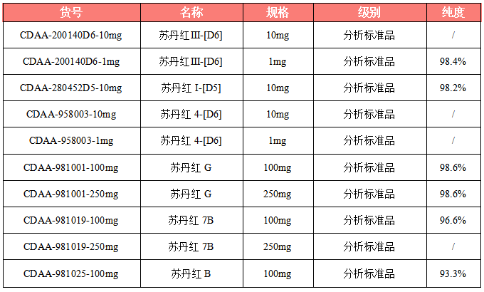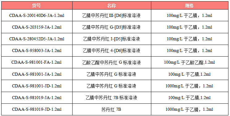 安谱璀世可提供三十多种苏丹红类标准物质。