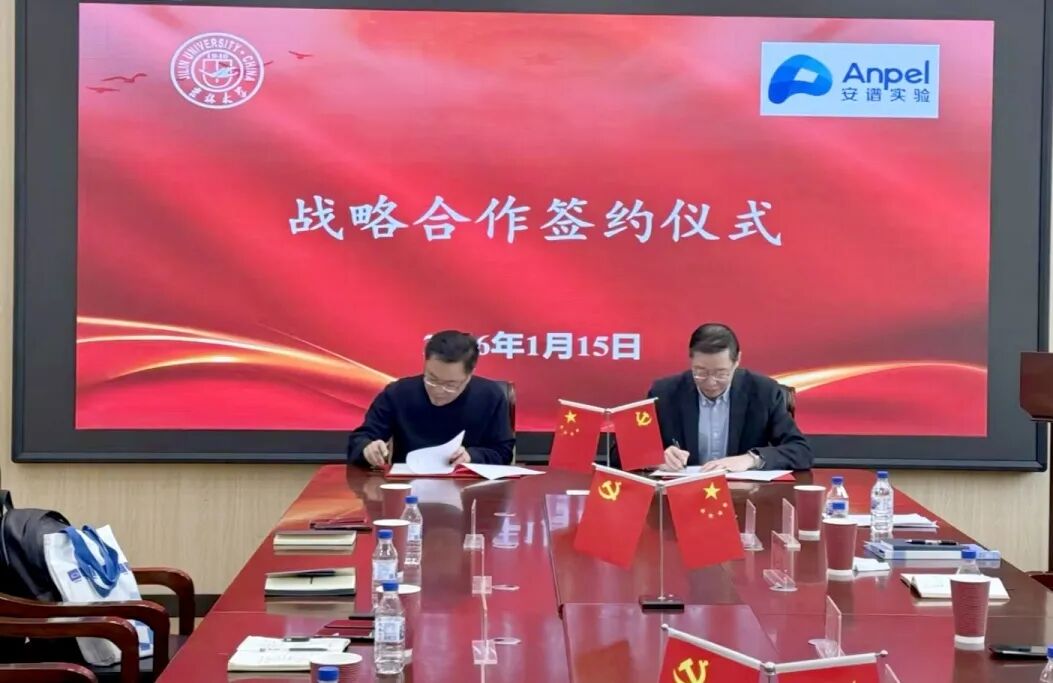 2026年1月15日,上海安谱实验科技股份有限公司(以下简称“安谱实验”)与吉林大学食品科学与工程学院在吉林长春正式签署双方校企产学研战略合作协议。吉林大学食品科学与工程学院书记梅士伟、院长张铁华、副院长叶海清、教研室主任黄卉教授、胡苗苗副教授、郝慧老师;安谱实验总经理吴刚、战略发展高级经理张炯恺、北区销售经理王子龙、大客户销售经理于洋等双方领导出席联合签约仪式。