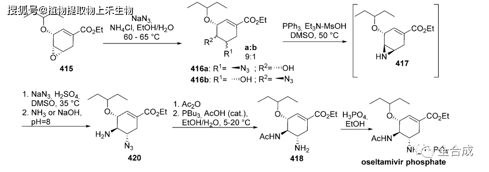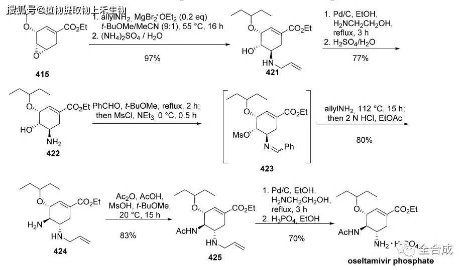 从环氧化物415到磷酸奥司他韦的工业化合成路线: