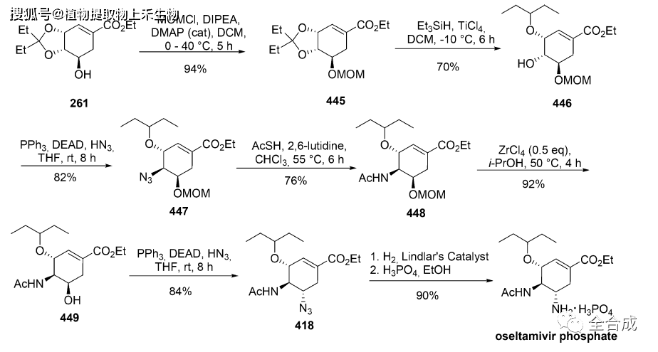 磷酸奥司他韦的合成研究报道较多,以上是总结了以莽草酸为起始原料或中间体进行进行合成的路线汇总。